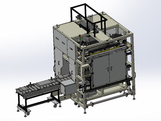 製品(ライスBOX、番重、発砲箱、段ボール等)に内袋を掛け、排出します。